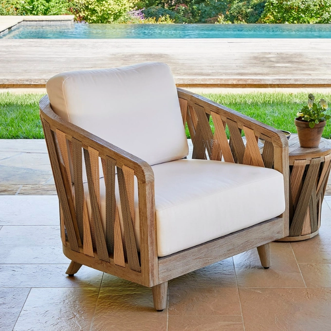 Bring the great outdoors indoors this summer by purchasing rustic patio furniture for your porch or patio area. These pieces feature classic wooden slats paired with thickly-padded cushions for maximum comfort.