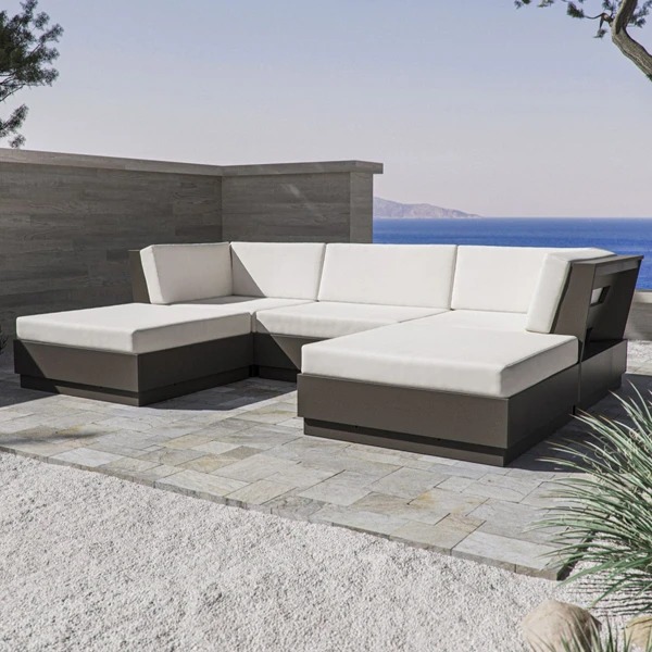 An alternative option would be a rattan sofa with a woven finish made of durable synthetic wicker and hand-braided jute that features an eye-catching woven finish, ideal for outdoor environments. This material was specifically created to withstand rain and sunlight exposure – its UV testing protocol even went over 1000 hours! In addition to being comfortable and long-lasting, its maintenance requirements can easily be managed – simply dusting or vacuuming keeps it looking its best and ready for use.